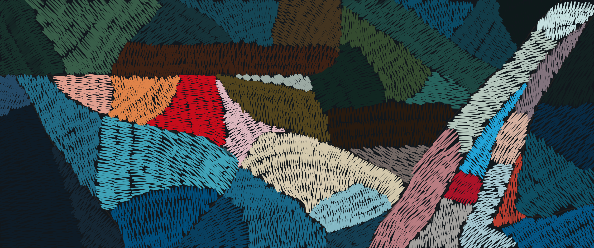 The chocolate embellishing tool mark documented in a sketchbook back in 2013, a genesis ingredient for this project, emerge organically from ‘pot’ style shapes like an organic growth of plant stem into flower bud. The ‘pot’ shapes first appeared in a series of 2020 acrylic paintings, an example shown below on the left side of the second image (shapes floating on ultramine blue).